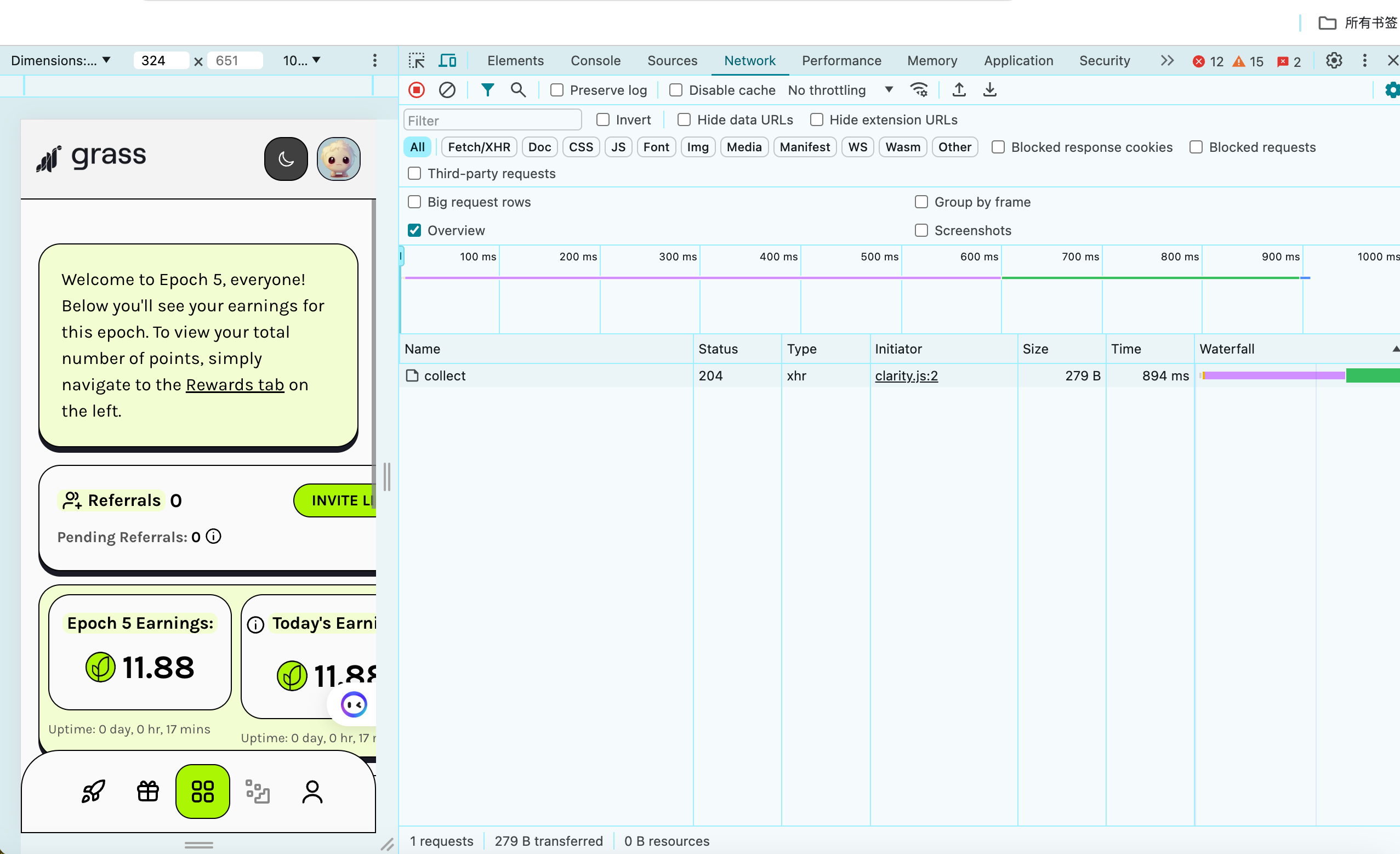 After logging in, enter the Grass Dashboard interface. Enter F12 on the keyboard (fn+F12 on MacOs) to enter the developer tools.<br>
